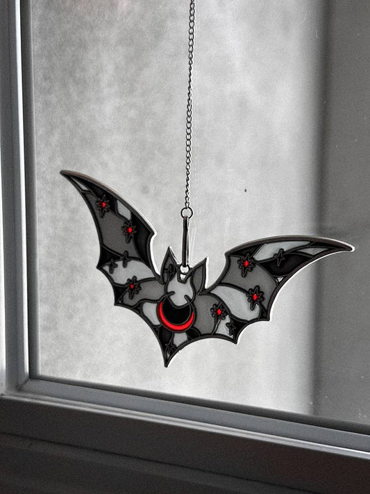 Purple Stained Glass Bat Suncatcher Ornament for Halloween