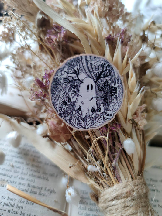 Sold outFrida Kahlo Ghostie Wooden Pin Badge