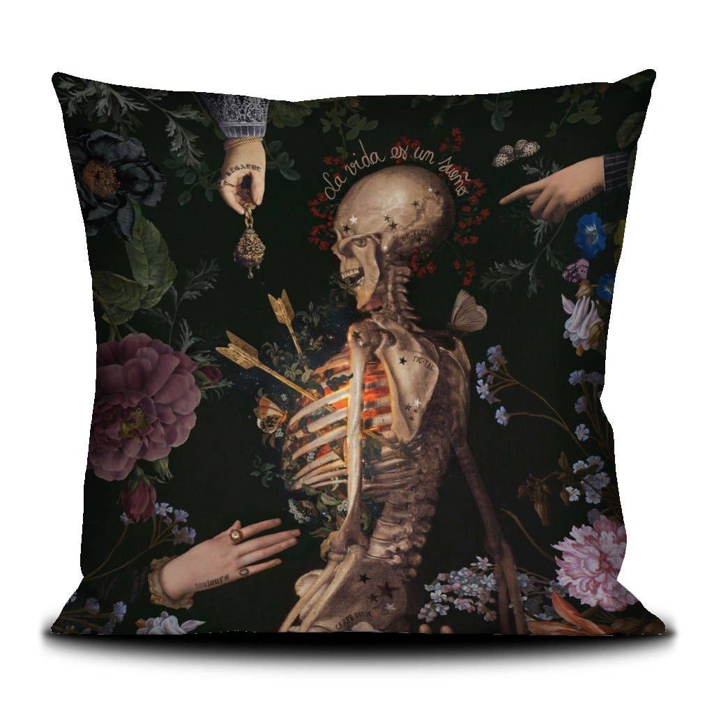 High quality cushion cover printed on velvet, with black piping finish. Designed in France Confection Italy/Design France Manufacturing in Italy