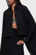 - Dramatic, asymmetric oversized bell sleeves.