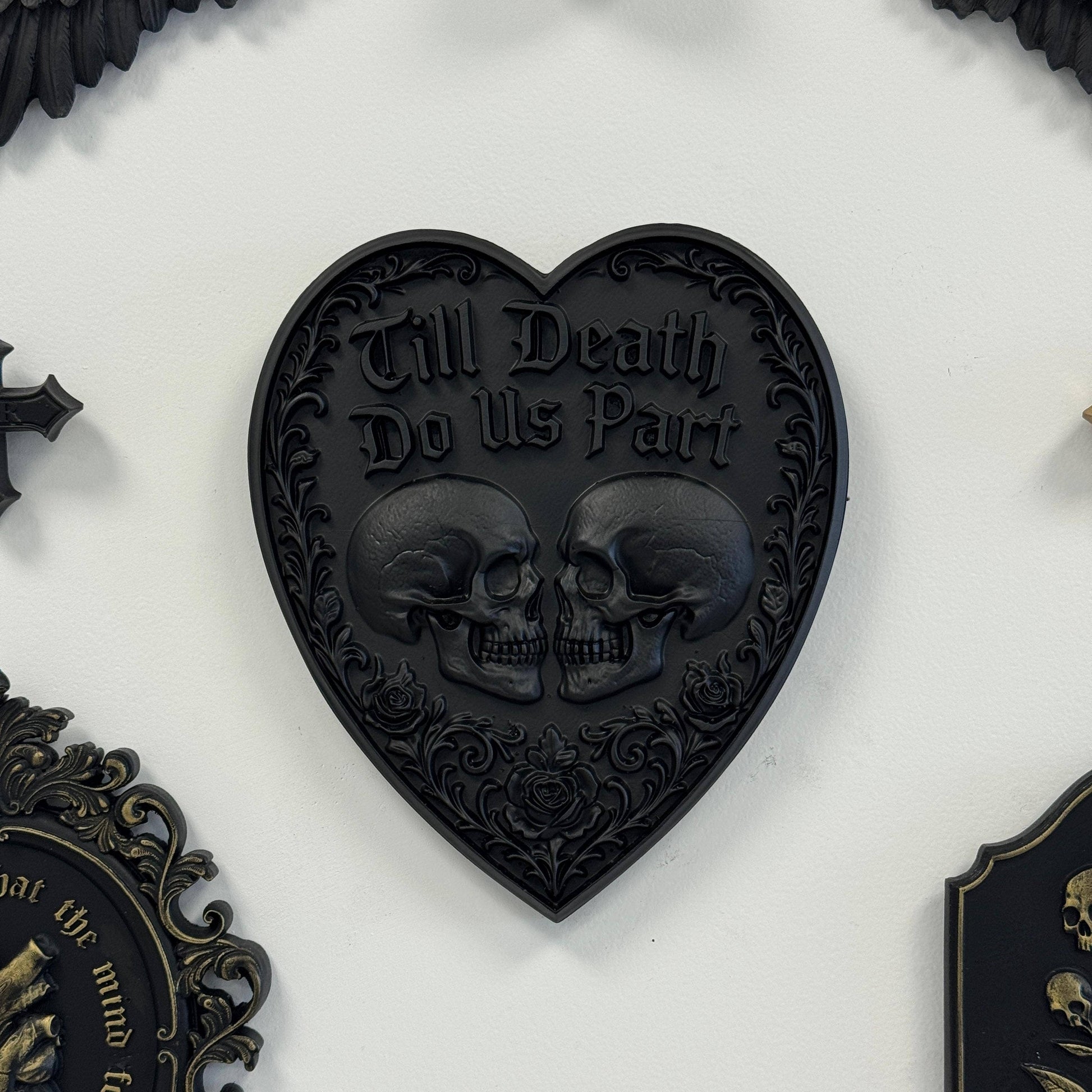 Crafted with intricate floral detailing, the plaque symbolises eternal love and devotion beyond life itself. A unique statement piece for your wall, it makes an unforgettable gift for anniversaries, gothic weddings, or Valentine’s Day.