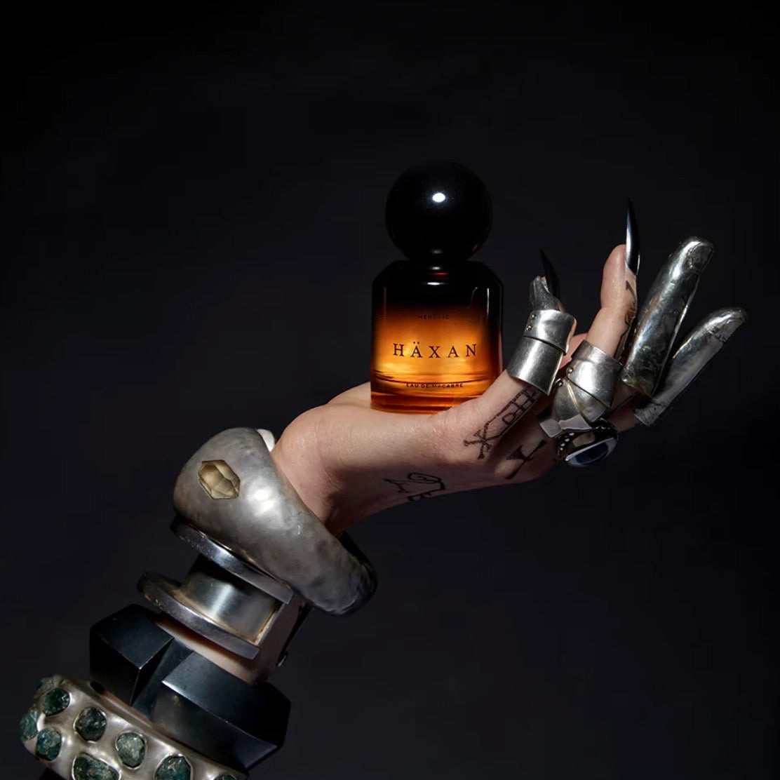 A perfume of spellwork and shadow, conjured from roots, resins, and relics, Häxan is a magical elixir of fossilized amber, velvety osmanthus, and damp oakmoss. This is not adornment, it is alchemy.