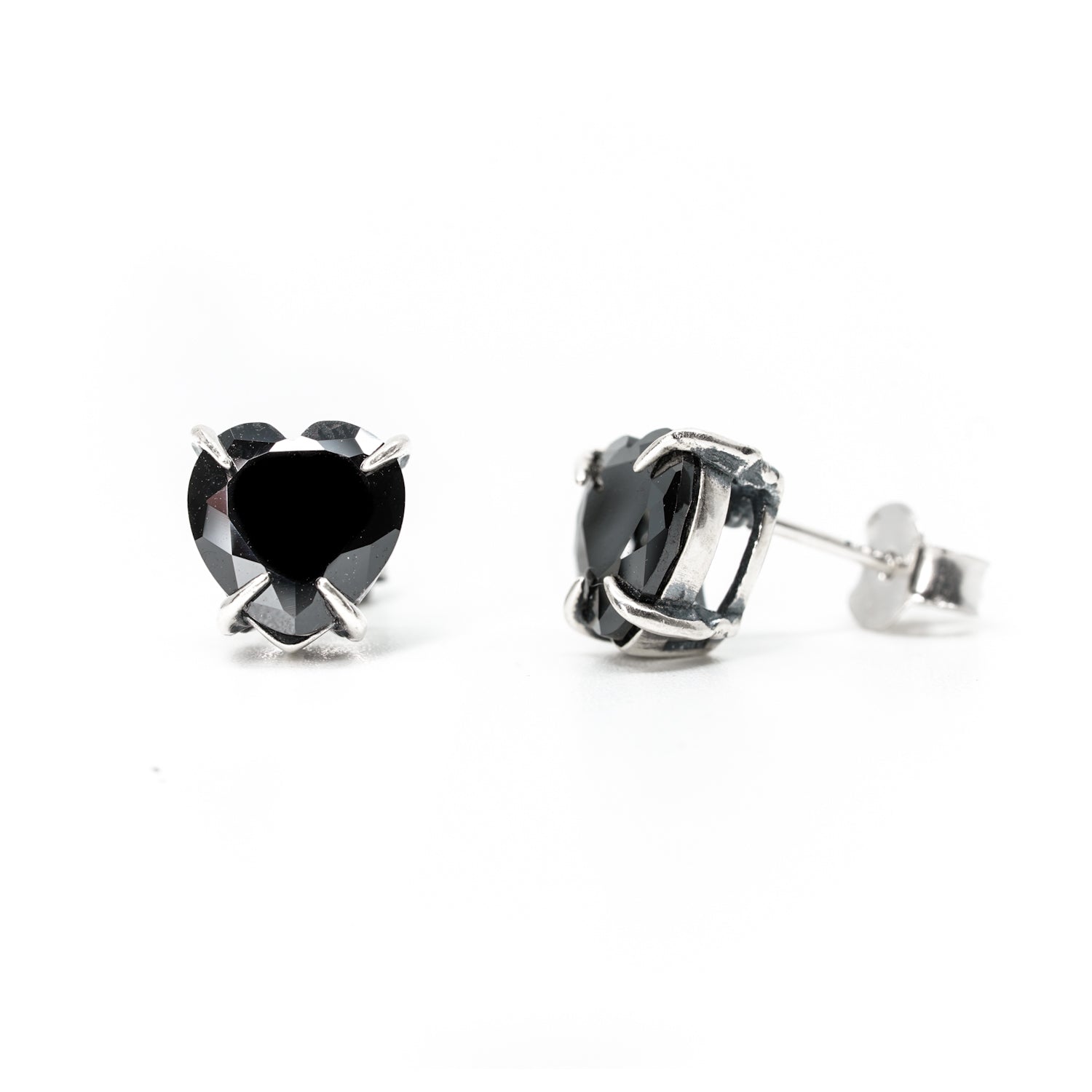 Introducing Love Bites studs, the perfect complement to our Love Bites Ring. Made of 925 sterling silver snake fangs grasping at a striking black cubic zirconia heart.