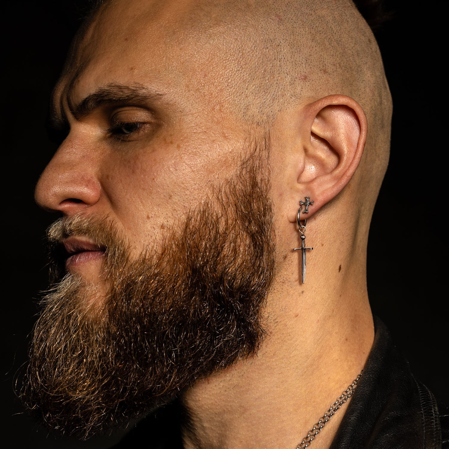 Introducing "Oathkeeper," a sterling silver sword earring inspired by the distinctive clasp of our best-selling Conquered bracelet. This gothic, brutal & meticulously crafted earring is available as a singular statement or a pair.