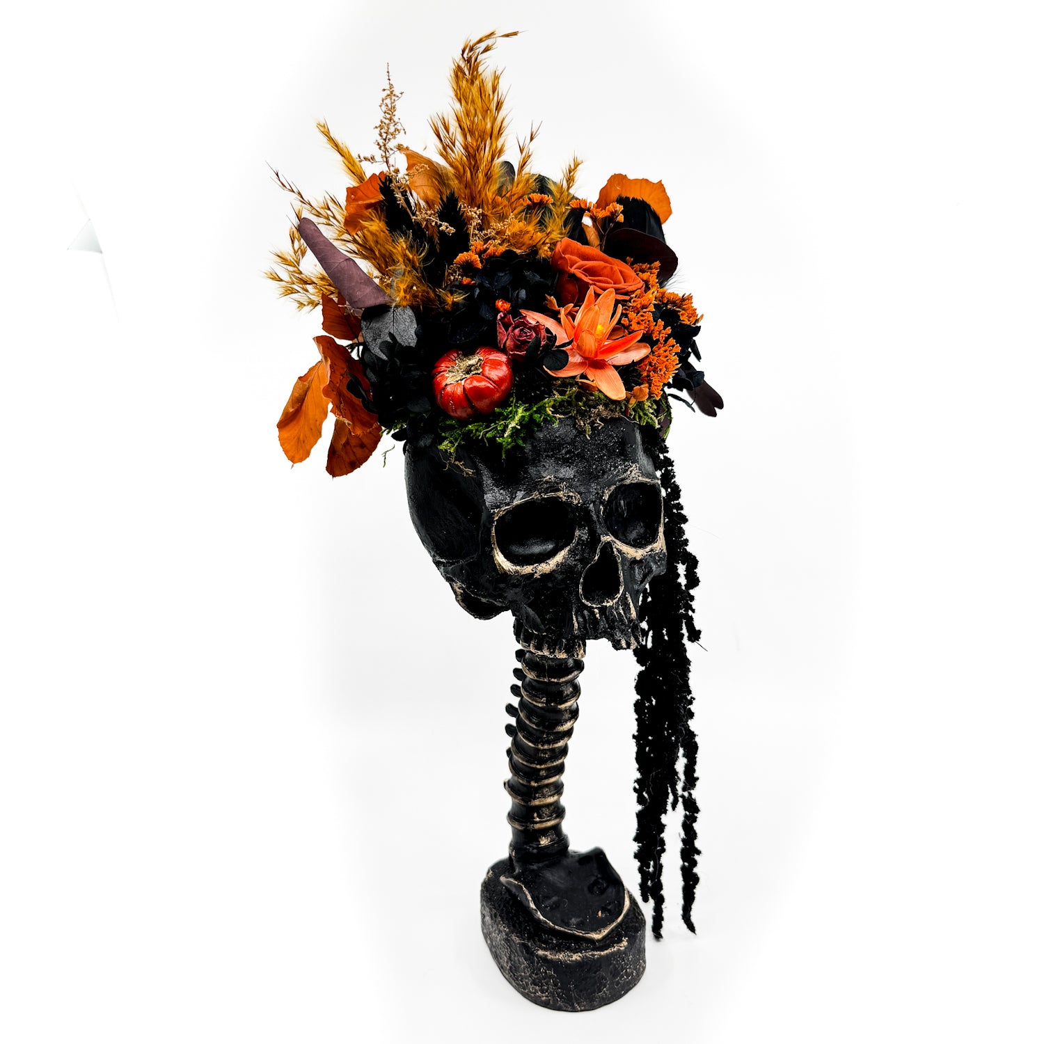 One of a kind large dried floral display by Black Raven Flowers.
